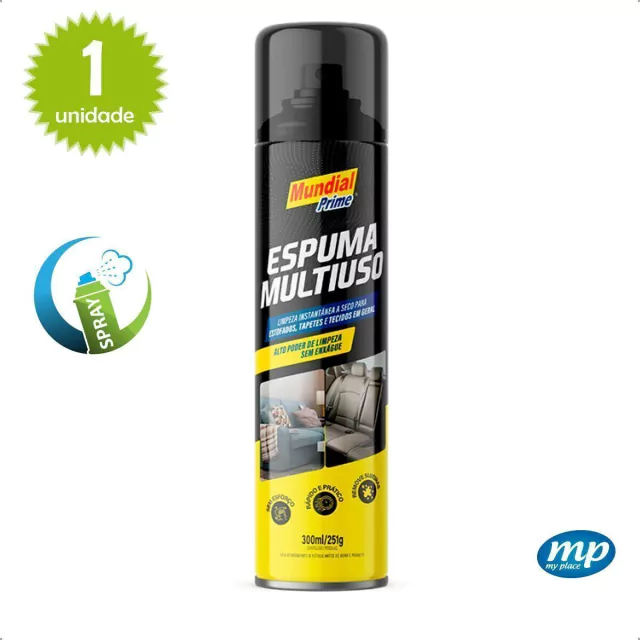 A Espuma Multiuso Mundial Prime foi desenvolvida para melhorar a eficiência na limpeza a seco de qualquer superfície lavável do seu veículo, removendo de forma rápida e profunda sujeiras acumuladas no carpete, teto, bancos, consoles e outras partes de tecidos em geral. Alto rendimento, não precisa de enxágue, com perfume agradável e ainda pode ser utilizado na limpeza doméstica de sofás, tapetes, colchões, etc.
