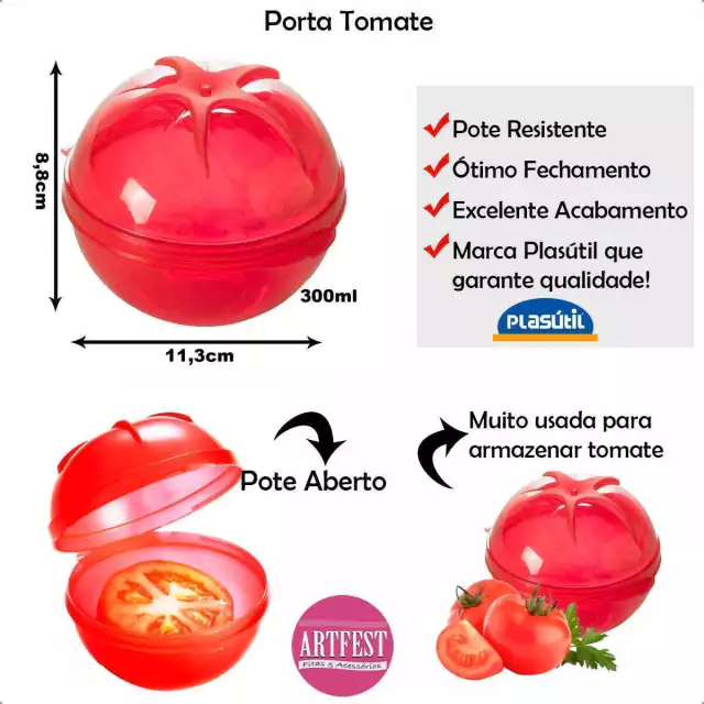 Pote Porta Metade modelo Tomate com tampa fixa.