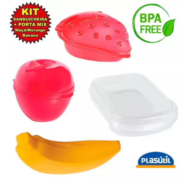 Kit 04 Potes Porta Mix Banana/Maçã/Morango/Sanduicheira R:1315/4897/4757/4893 Plasutil